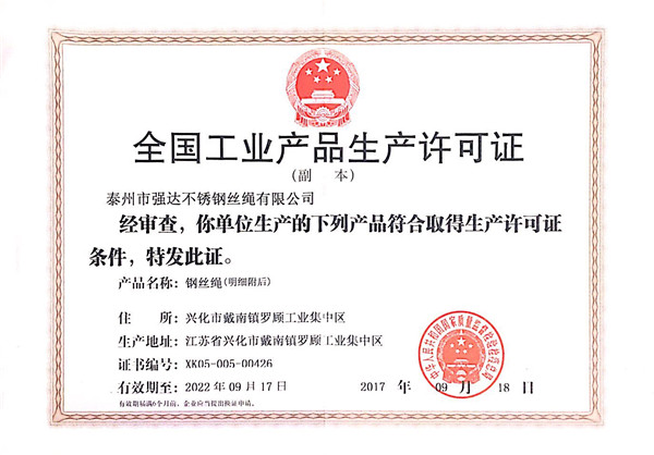 泰州市強(qiáng)達(dá)不銹鋼絲繩有限公司位于江蘇興化市戴南經(jīng)濟(jì)開發(fā)區(qū),公司致力于不銹鋼絲繩產(chǎn)品生產(chǎn),立志成為“國內(nèi)技術(shù)標(biāo)桿型吊索具生產(chǎn)企業(yè)”。以此戰(zhàn)略思想指導(dǎo),公司堅(jiān)決貫徹“質(zhì)量贏市場,管理增效益,誠信贏天下”的質(zhì)量方針。以完善的服務(wù)在國內(nèi)不銹鋼絲繩市場樹立良好的品牌形象。公司榮獲“江蘇省質(zhì)量信得過企業(yè)。     靈活的管理機(jī)制,經(jīng)驗(yàn)豐富的